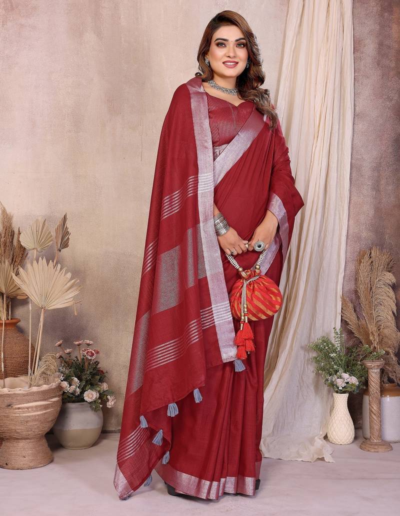 | Product Name | Red Weaving Linen Cotton Saree With Blouse | |