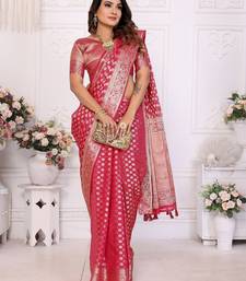 Red weaving soft organza saree with blouse