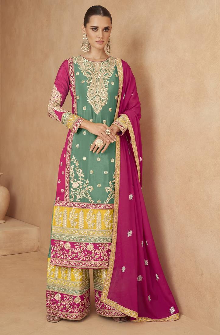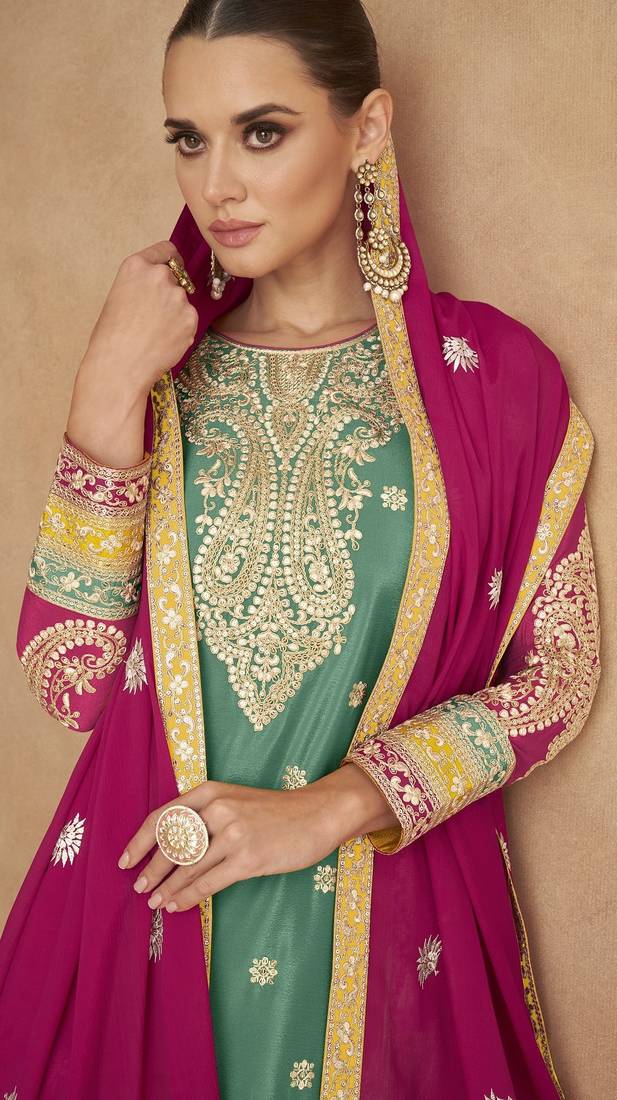| Product Name | Sea Green Chinon Semi Stitched Suit With Embroidery Codding Sequence Work | |