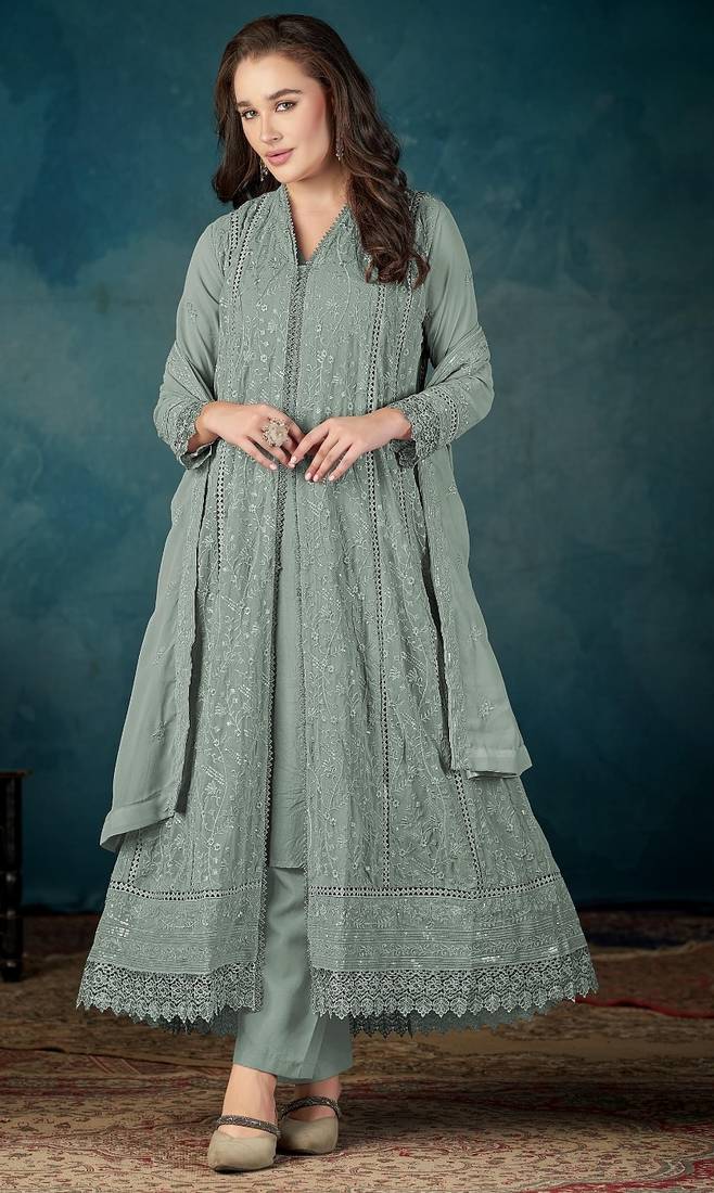 | Product Name | Sea Green Heavy Faux Georgette Suit With Embroidered Sequence Work | |