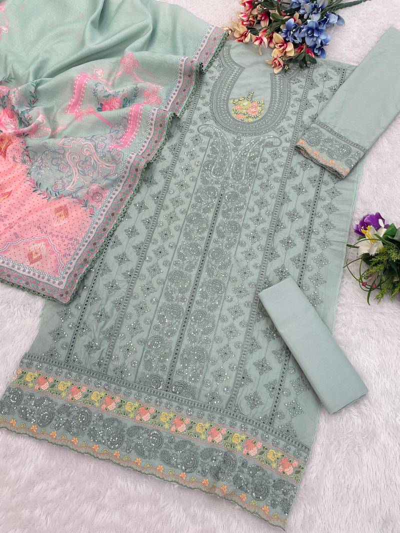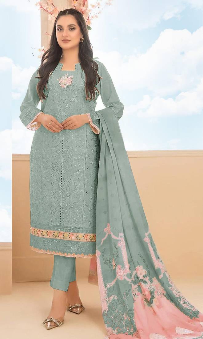 | Product Name | Sky Blue Cambric Cotton Semi Stitched Suit With Embroidery & Sequence Work | |