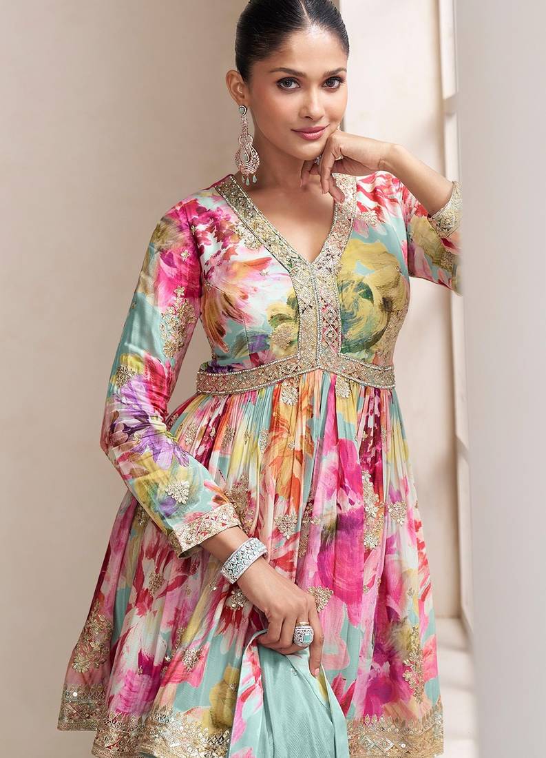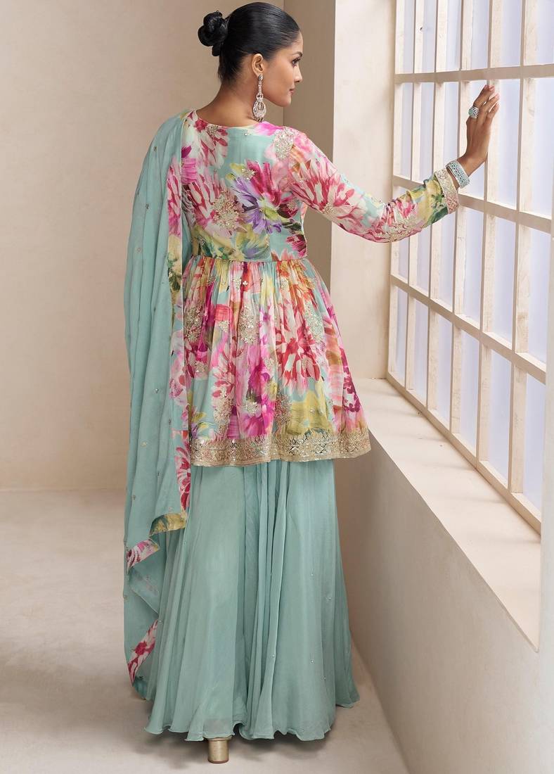 | Product Name | Sky Blue Chinon Palazzo Full Stitched Free Size | |