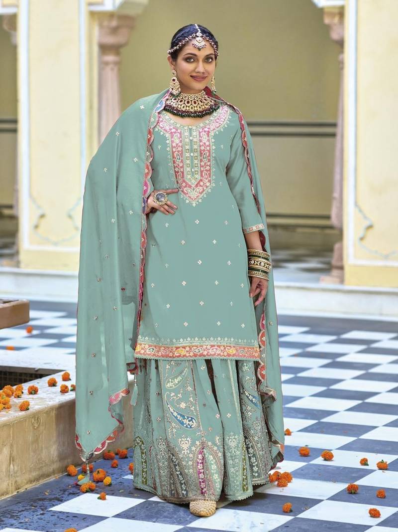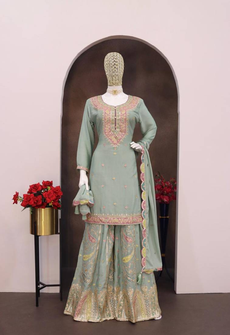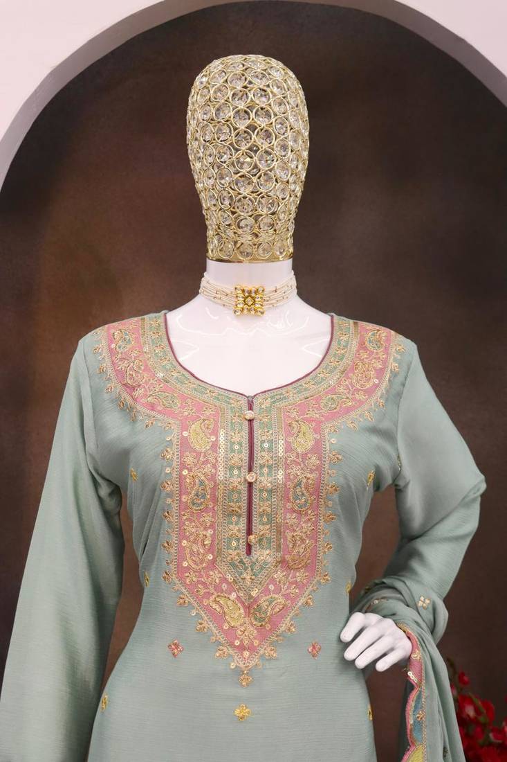 Product Name | Sky Blue Embroderied Silk Palazzo Suit | |