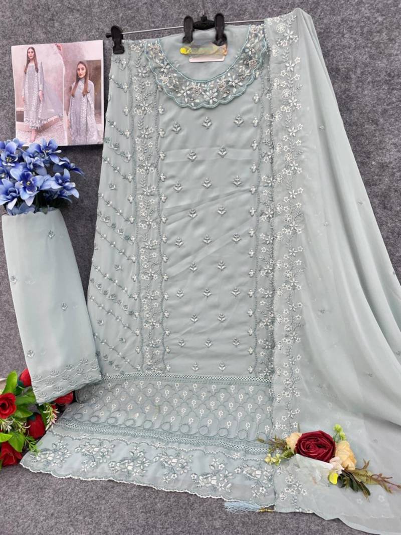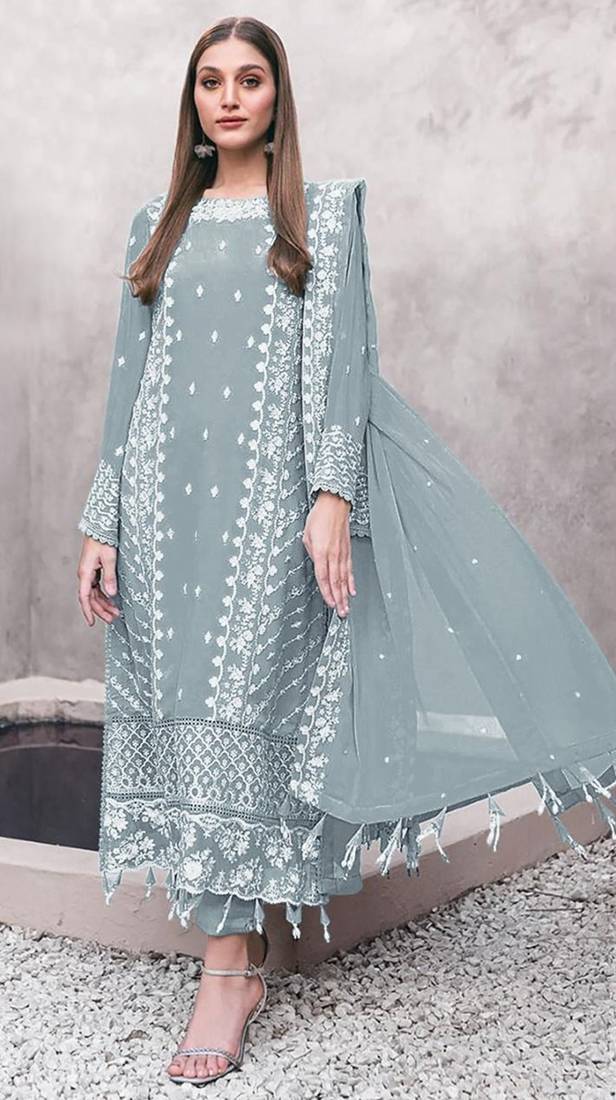 Product Name | Sky Blue Embroidered Faux Georgette Suit | |