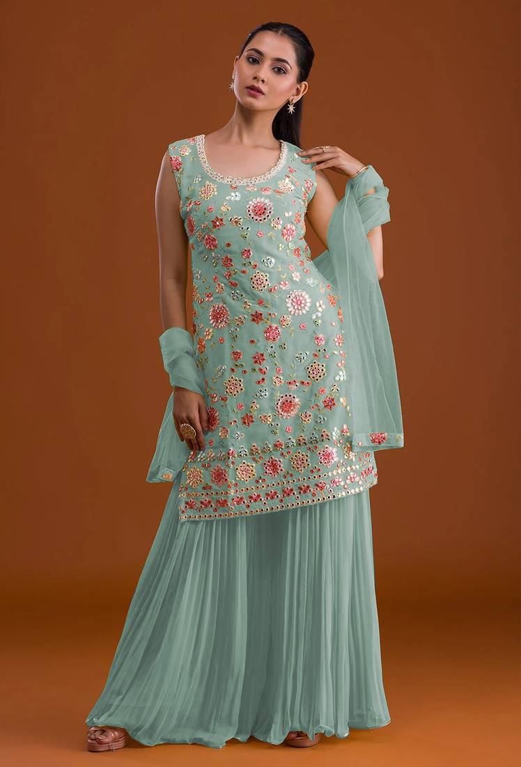 | Product Name | Sky Blue Georgette Semi Stitched Suit With Embroidered Multi Work | |