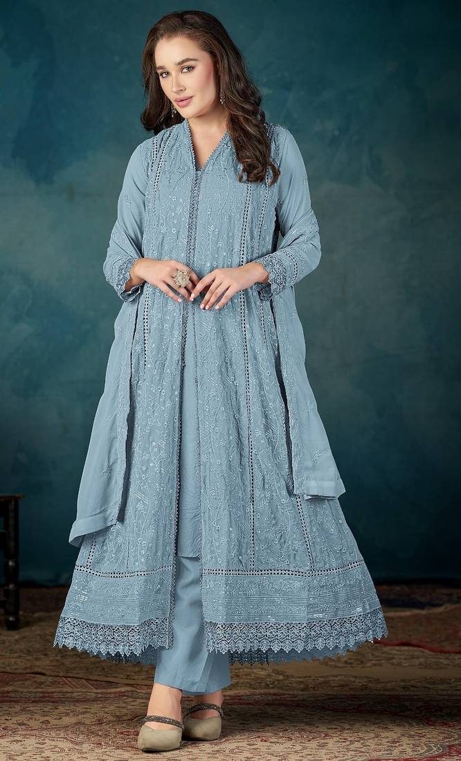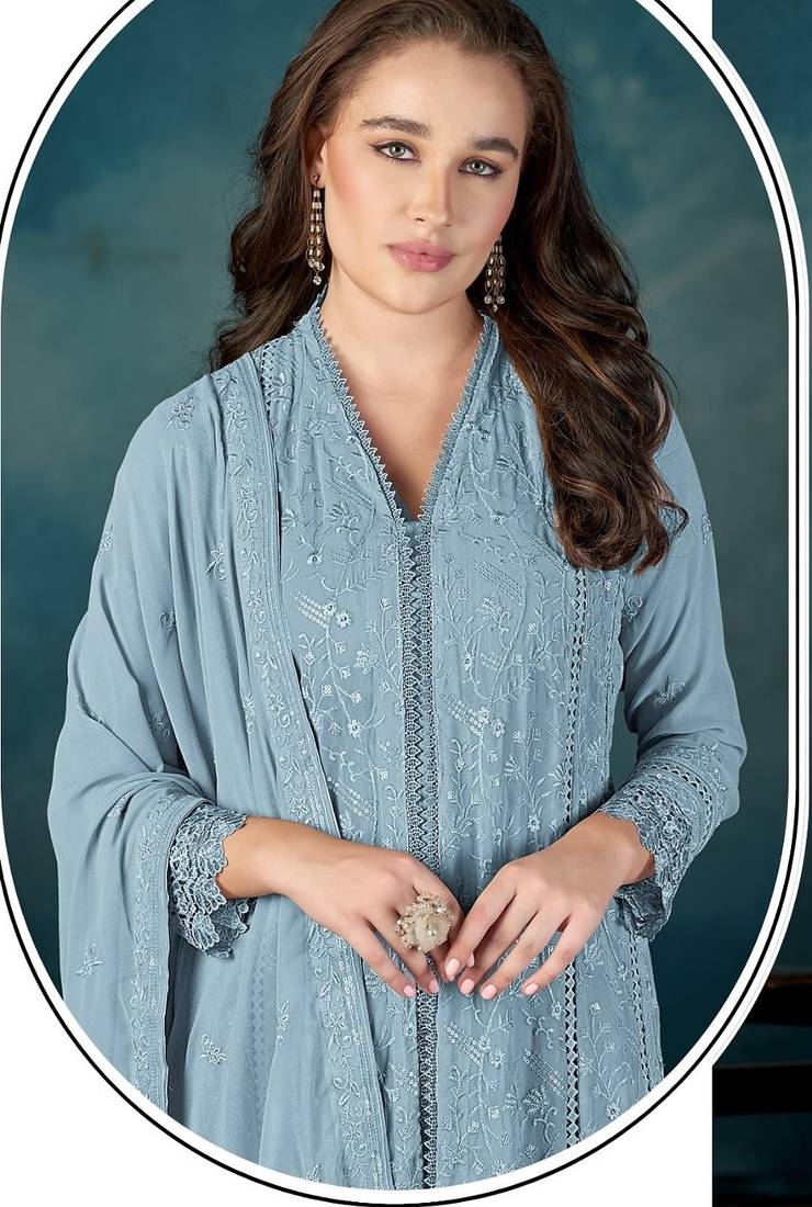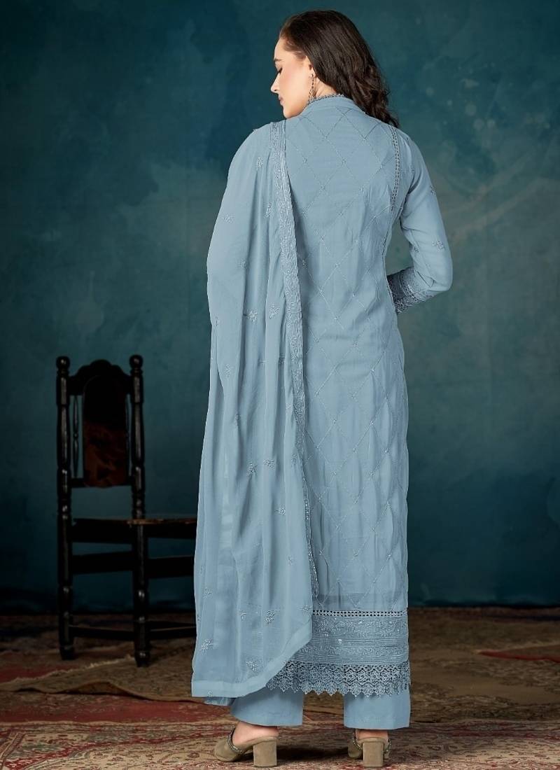 Product Name Sky Blue Heavy Faux Georgette Suit With Embroidered Sequence Work