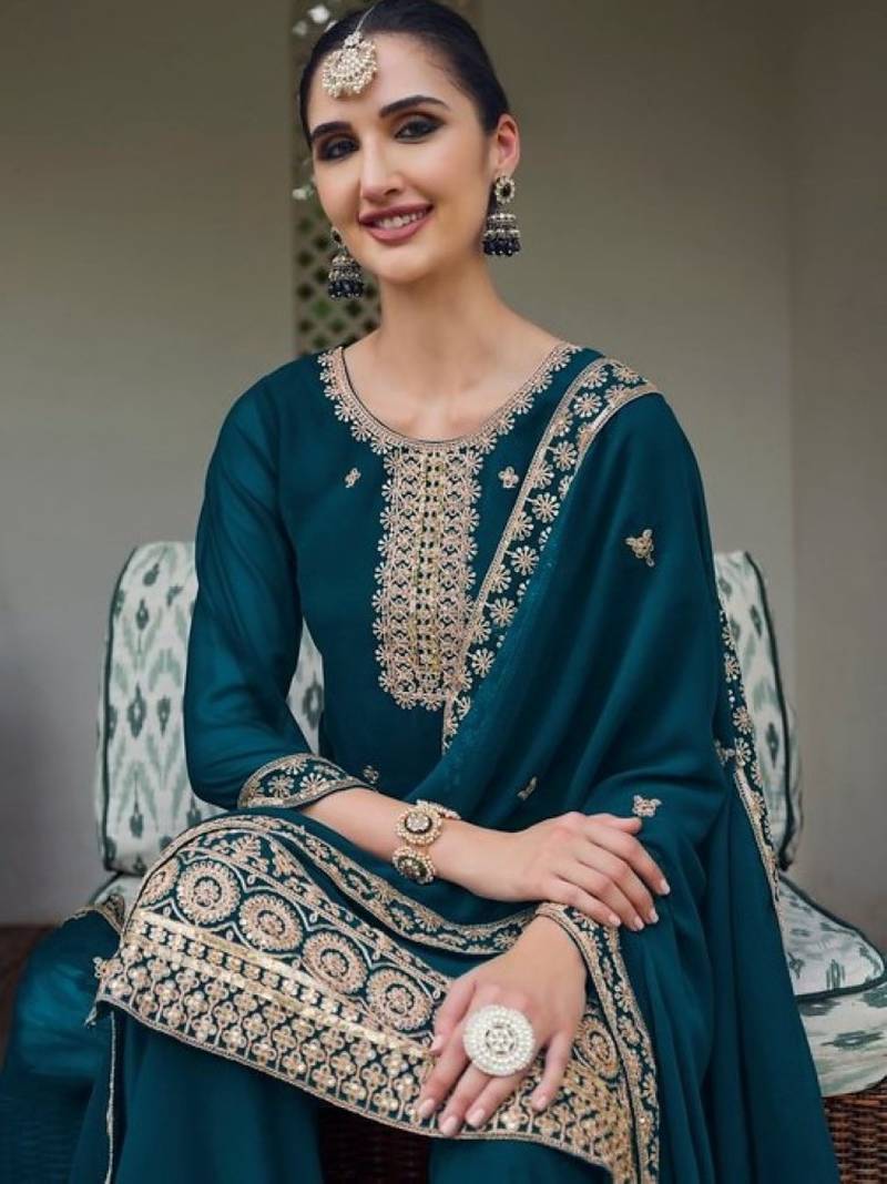 | Product Name | Teal Blue Faux Georgette Sequin Embroidered Suit | |