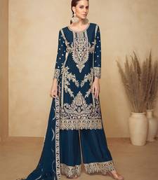 Teal chinon semi stitched plazzo suit with codding dori & sequence work
