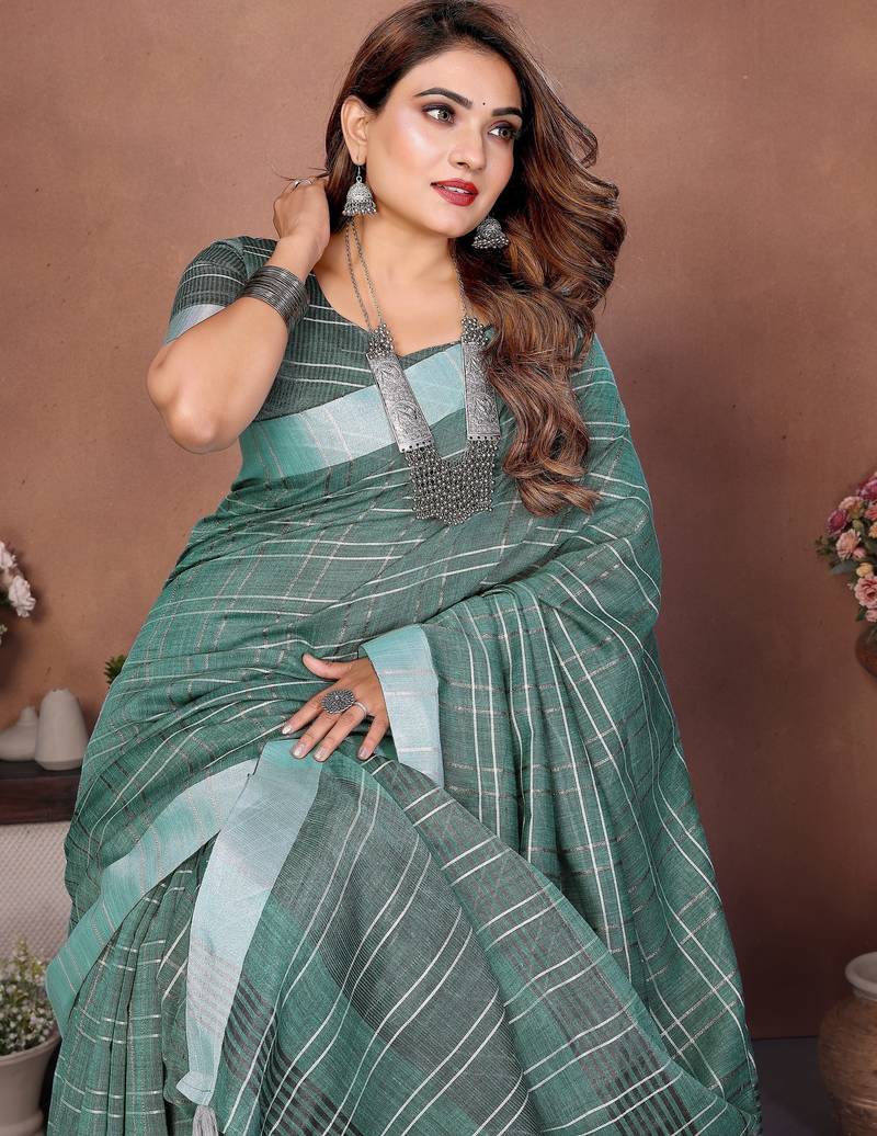 | Product Name | Teal Green Weaving Linen Cotton Saree With Blouse | |