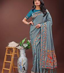 Teal art silk fabric with jacquard work and zari weaving saree with blouse