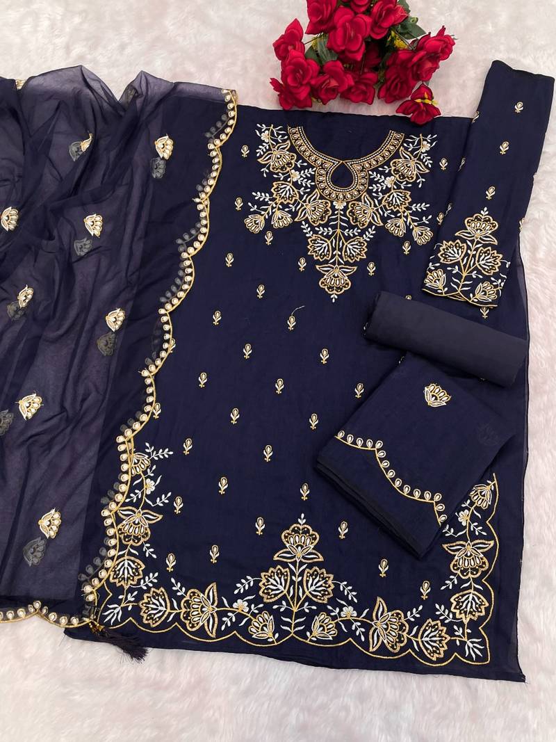 Teal vichitra semi stitched suit with embroidered viscose thread jari & sequence work