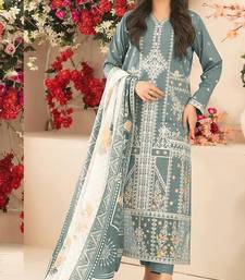 Turquoise cambric cotton semi stitched suit with embroidery & sequence work