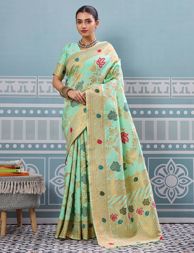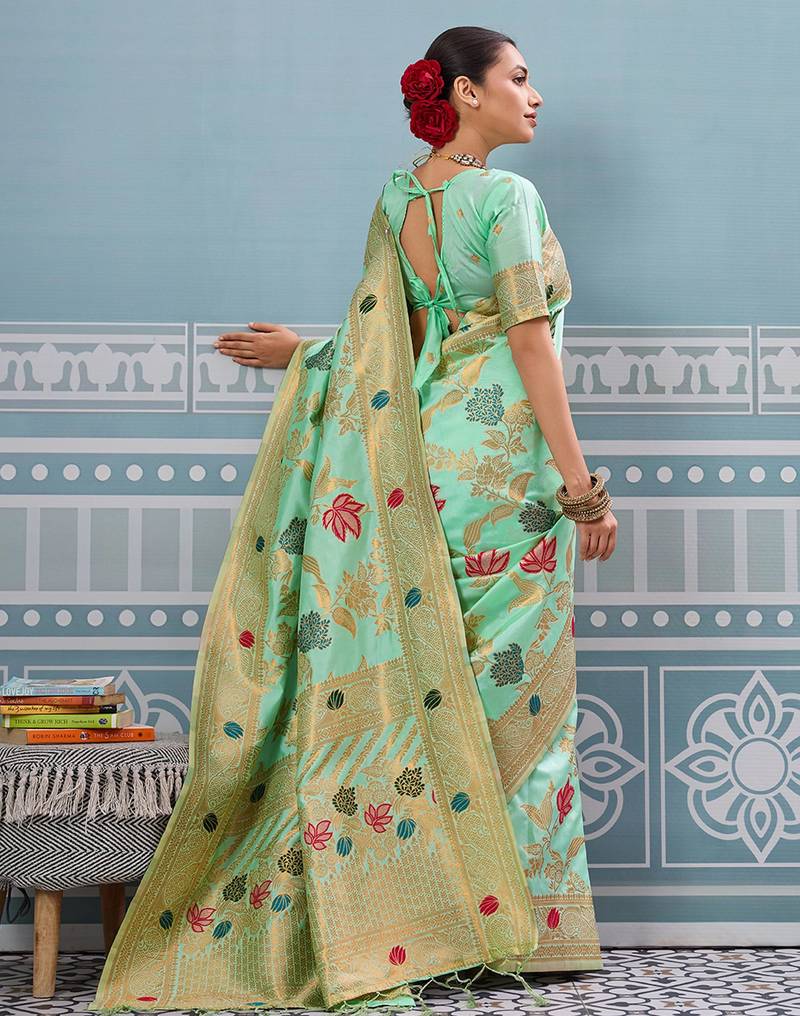 | Product Name | Turquoise Soft Art Silk Saree With Woven Work With Blouse | |