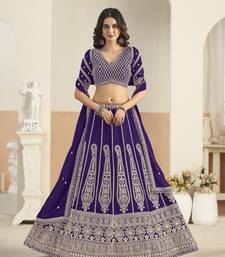 Violet faux georgette semi stitched lehenga choli with sequence work