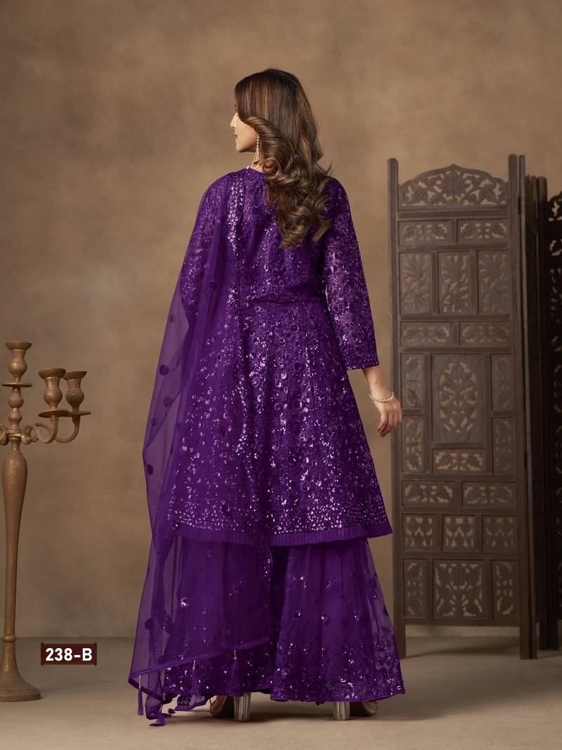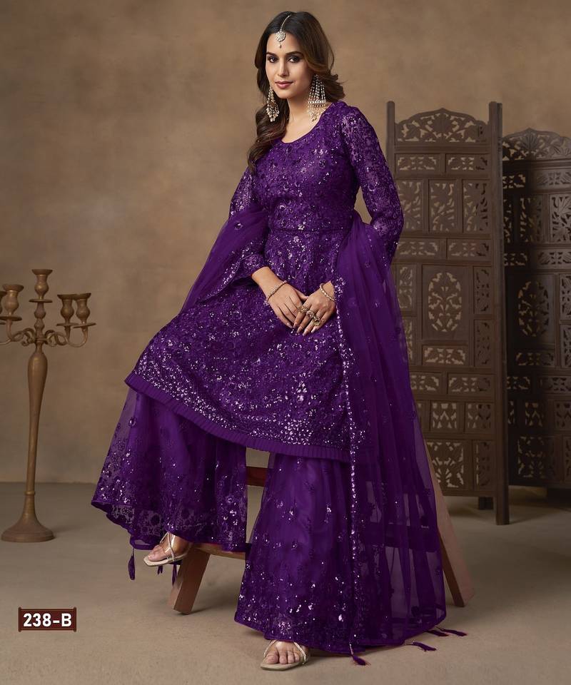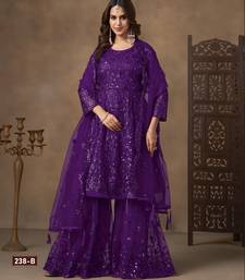 | Product Name | Violet Net Sharara Embroidered Sequins & Mirror Work Suit | |