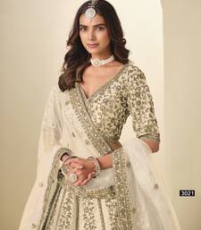 White art silk semi stitched lehenga choli with heavy embroidery work