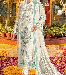 White & blue chiffon suit with embroidery & sequin work semi stitched
