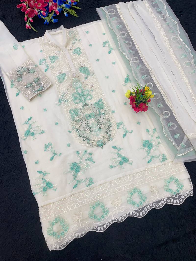 | Product Name | White & Blue Chiffon Suit With Embroidery & Sequin Work | |