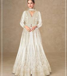 White chinon free size stitched anarkali suits with embroidery & sequence work