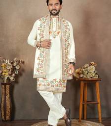 | Product Name | White Embroidery & Sequence Work Silk Straight Kurta Set | |