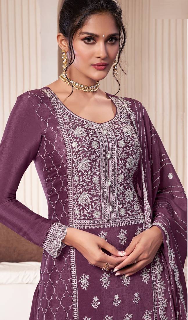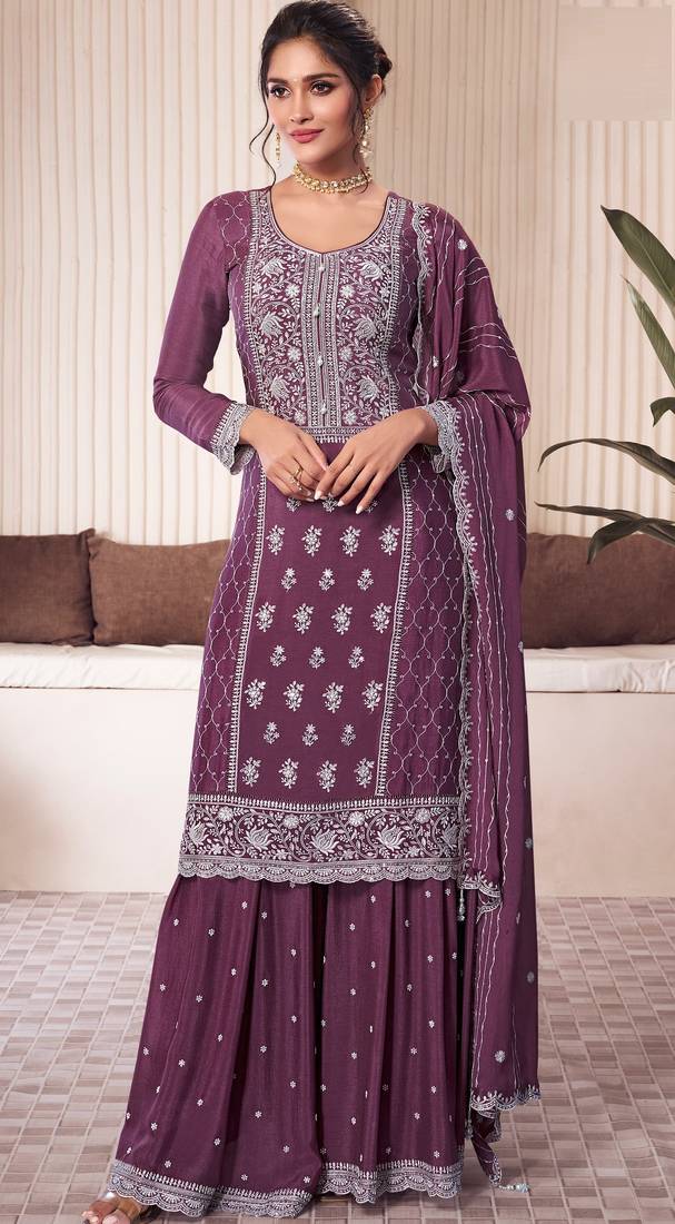 Product Name | Wine Embroderied Work Silk Sharara Suit | |
