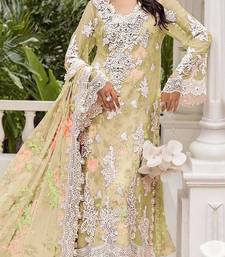 Yellow chiffon semi stitched suit with embroidery & sequence work