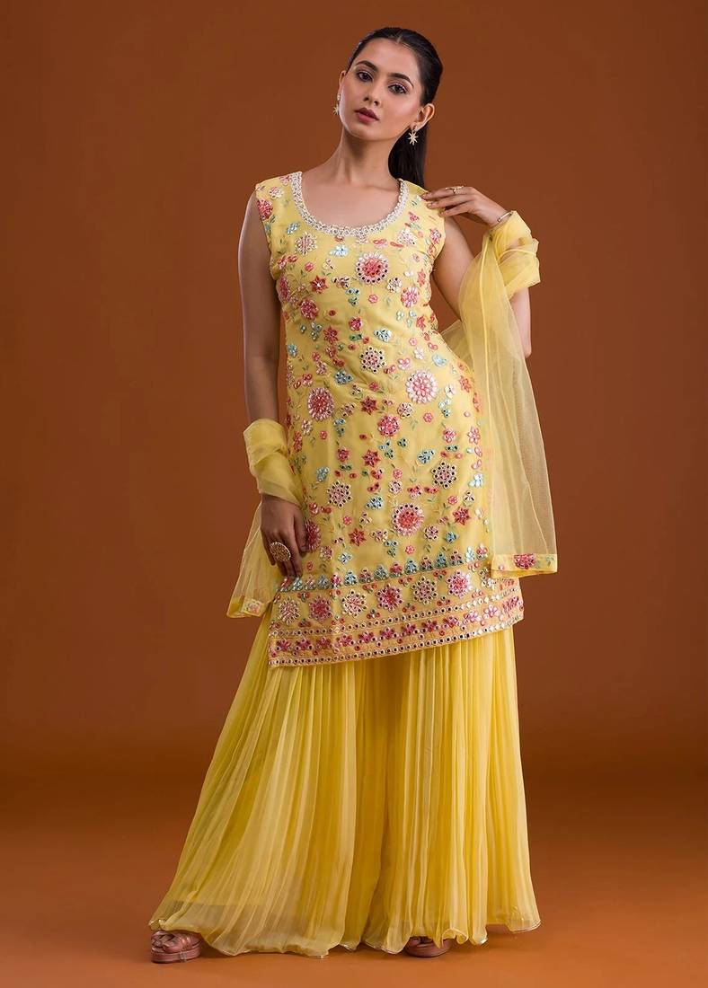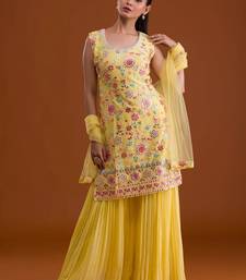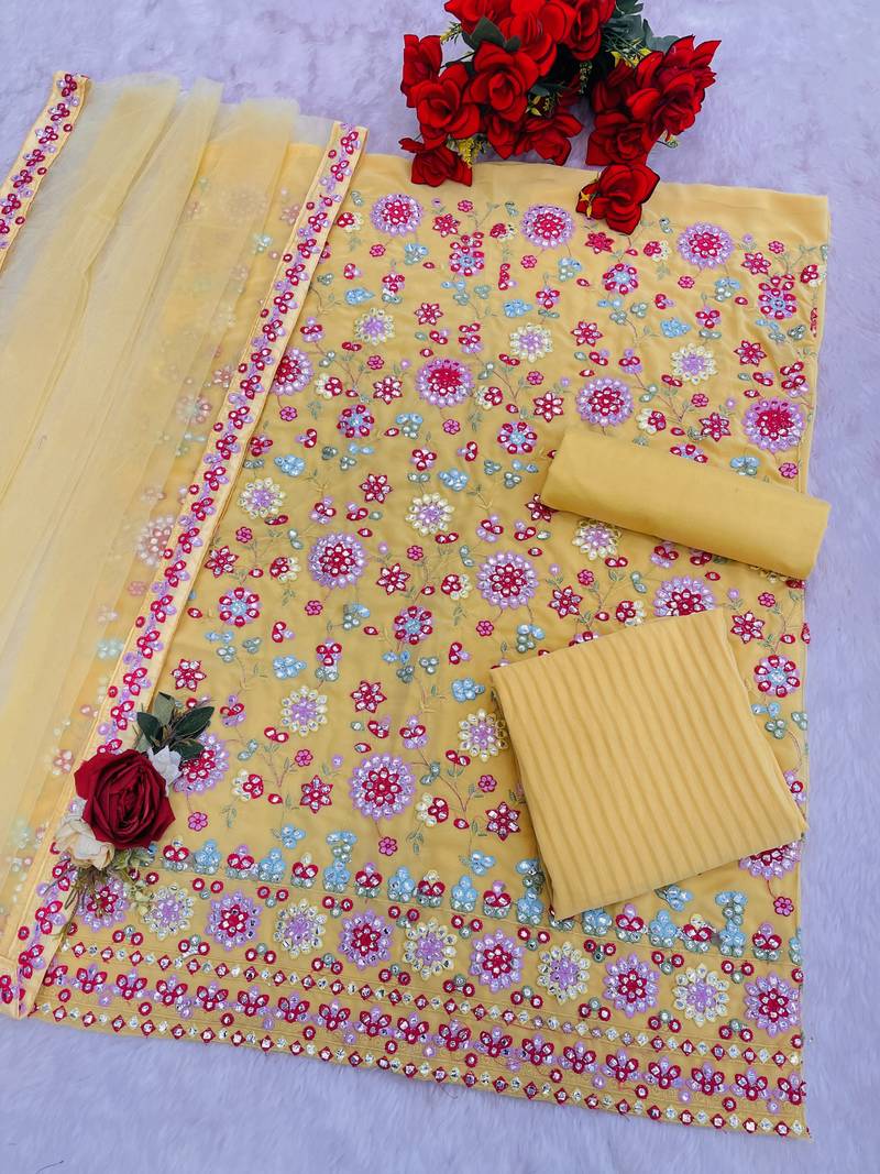 | Product Name | Yellow Georgette Semi Stitched Suit With Embroidered Multi Work | |
