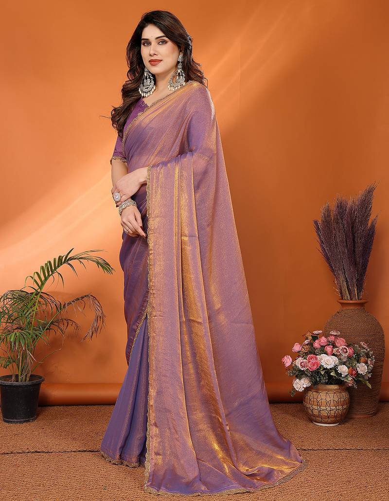 | Product Name | Purple Elegant Embellished Chiffon Saree With Frendi Chinese Border & Blouse Piece | |