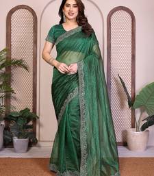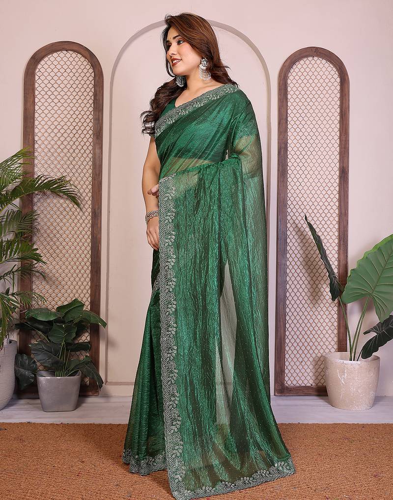 | Product Name | Green Embellished Net Saree With Diamond Lace Border & Blouse Piece | |