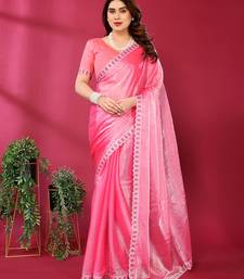 Product Name Pink Embroidered Tissue Saree With Jimmy Choo Lace Border & Blouse Piece