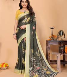 Green floral cotton silk saree with shimmer & blouse piece – elegant festive wear