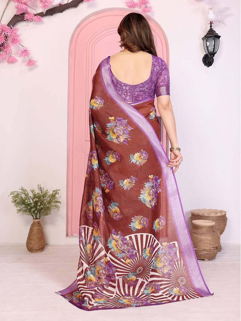 Add A Touch Of Elegance To Your Wardrobe With This Women’s Floral Cotton Silk Saree With Blouse Piece. Crafted From Soft Cotton Silk, This Saree Features A Delicate Floral Print And A Subtle Shimmer That Catches The Light Beautifully. Lightweight And Comfortable, It Drapes Effortlessly, Making It Perfect For Festive Occasions, Casual Gatherings, Or Daytime Celebrations. Comes With A Matching Blouse Piece For A Complete, Coordinated Look.