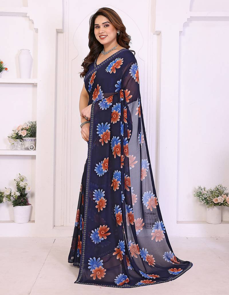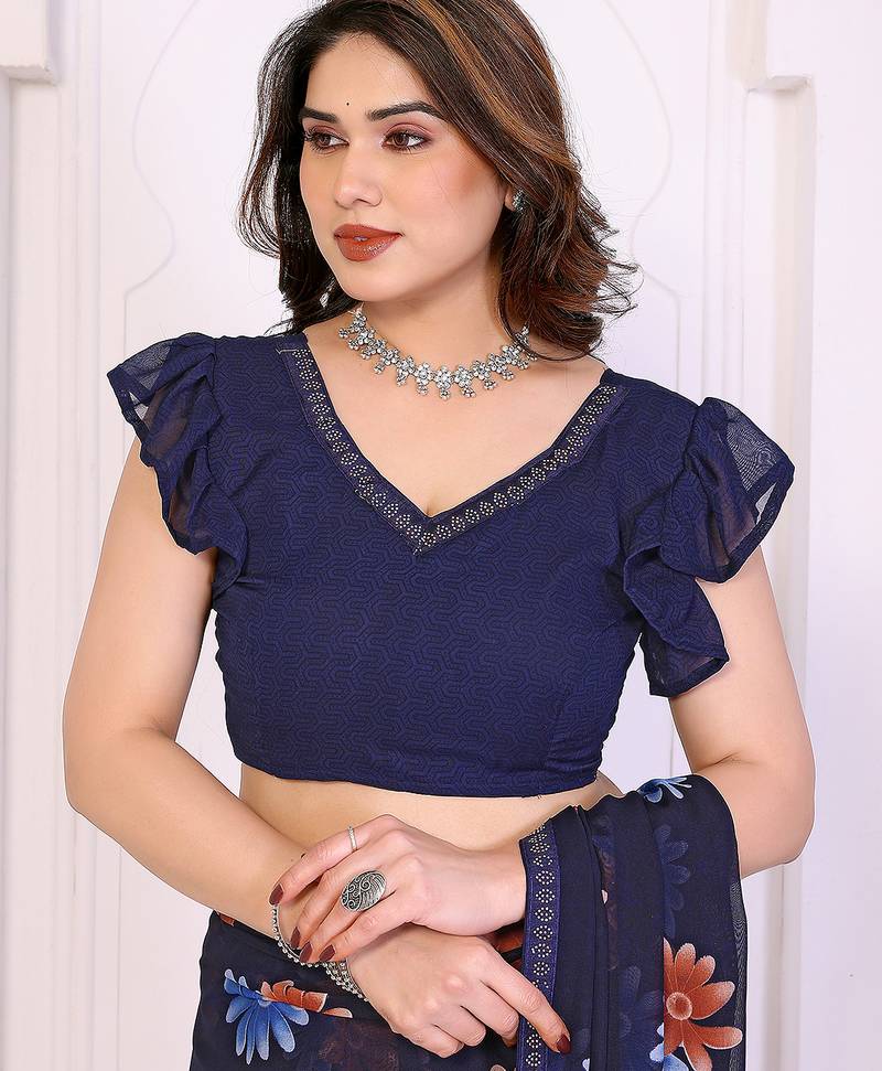 | Product Name | Blue Floral Georgette Saree With Lace Border & Blouse Piece | |