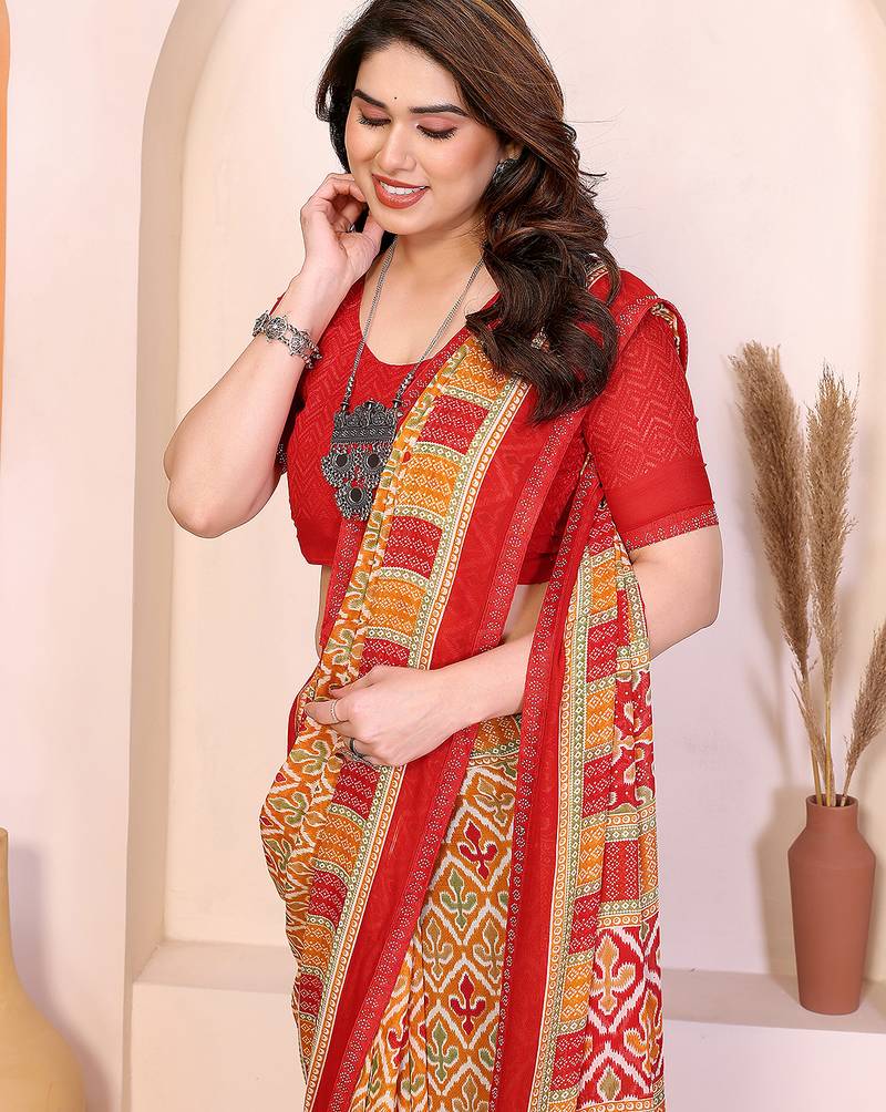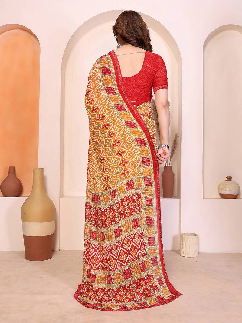 | Product Name | Yellow Geometric Print Georgette Saree With Lace Border & Blouse Piece | |
