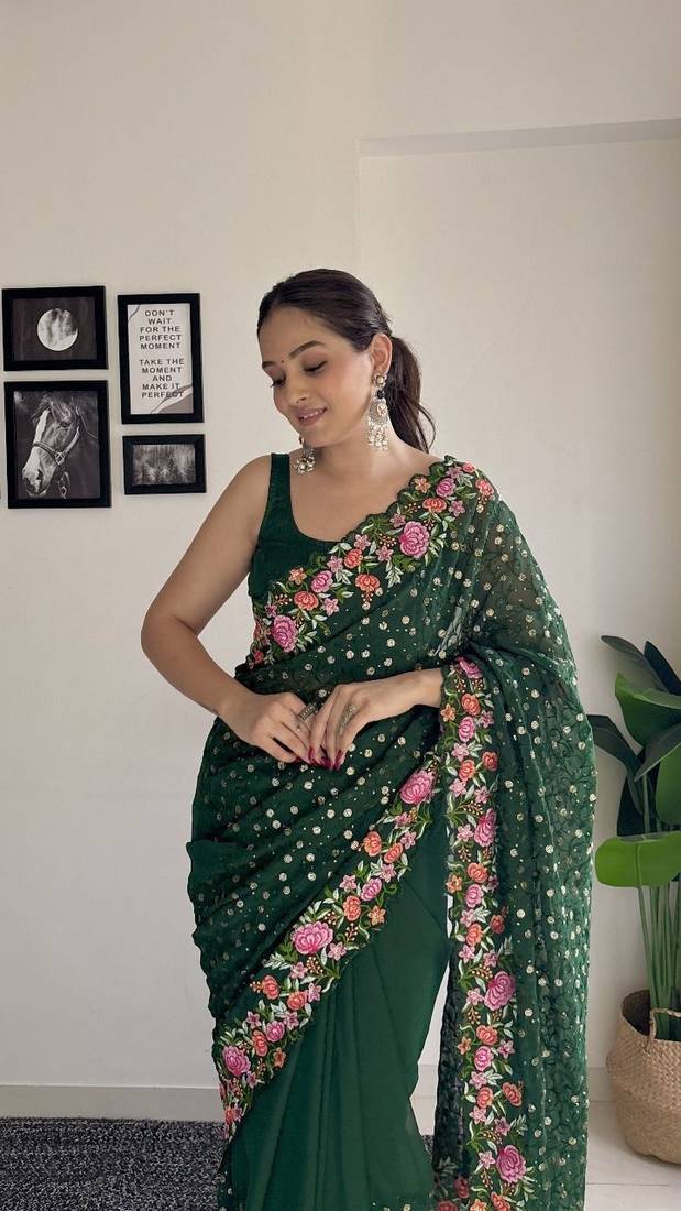 | Product Name | Beautiful Multi Coloured Thread Embroidery & Sequins Work Saree | |
