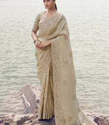 Beige tissue silk blend jacquard saree with pure tissue blouse elegant soft silk blend saree