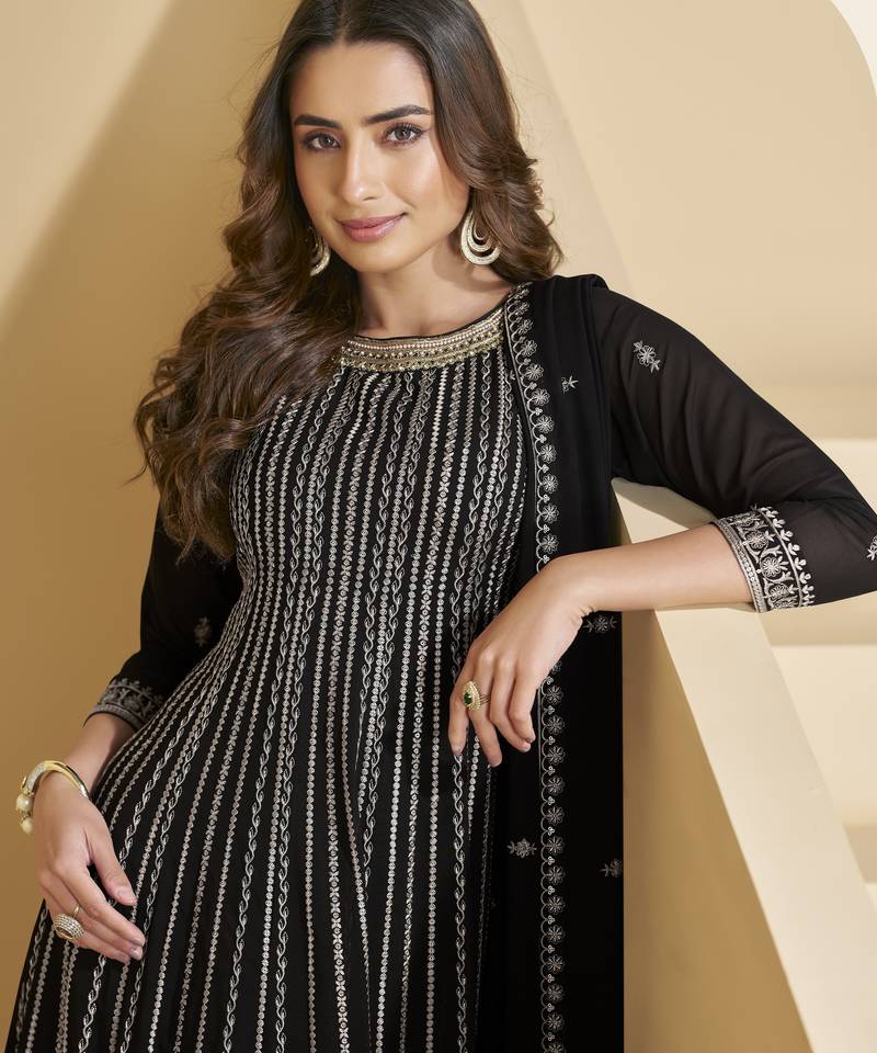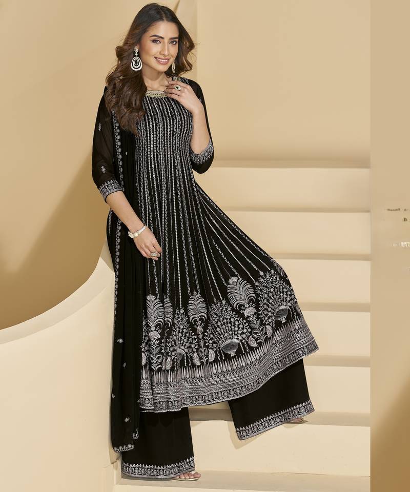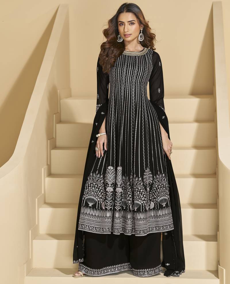 | Product Name | Black Embroidered Faux Georgette Palazzo Suit | |