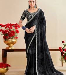 Black moss chiffon silk blend bandhani printed saree with embroidered lace boarder with blouse