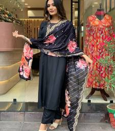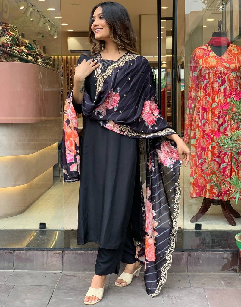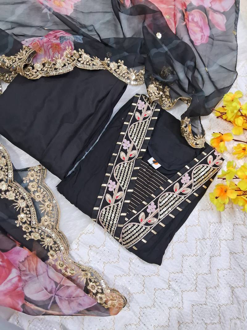 Black rayon embroidery sequin kurti pant dupatta set stitched