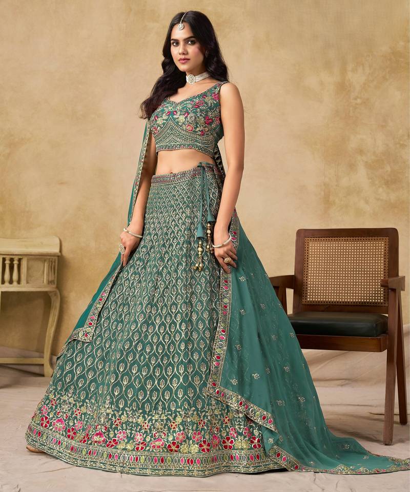 | • | Dupatta | : | Color- Teal / Fabric- Georgette |