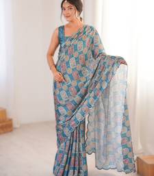 | Product Name | Blue Heavy Chinon Printed Saree With Mirror Work Border | |