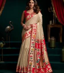 Chiku premium tissue paithani saree with lotus zari border & pum pum