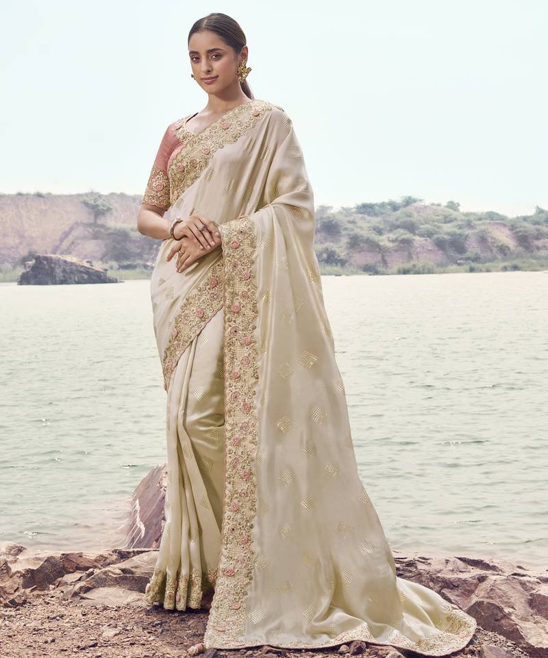 | Product Description | This Chiku Satin Silk Saree Comes With A Lovely Baby Pink Pure Tissue Blouse. Its Smooth Satin Finish Offers A Modern And Charming Festive Look. |