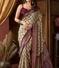 | • | Saree | : | Color- Cream / Fabric- Fancy Fabric |