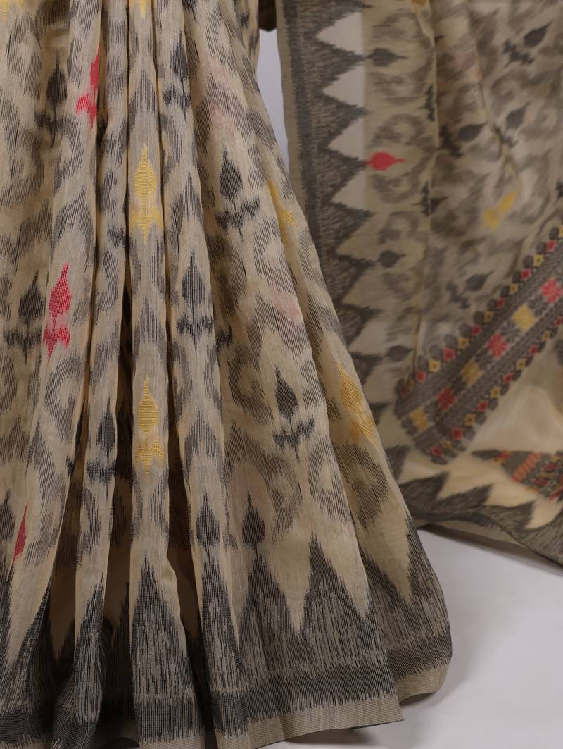 | Product Name | Cream Poly Cotton Printed Saree With Thread Weaving Work | |