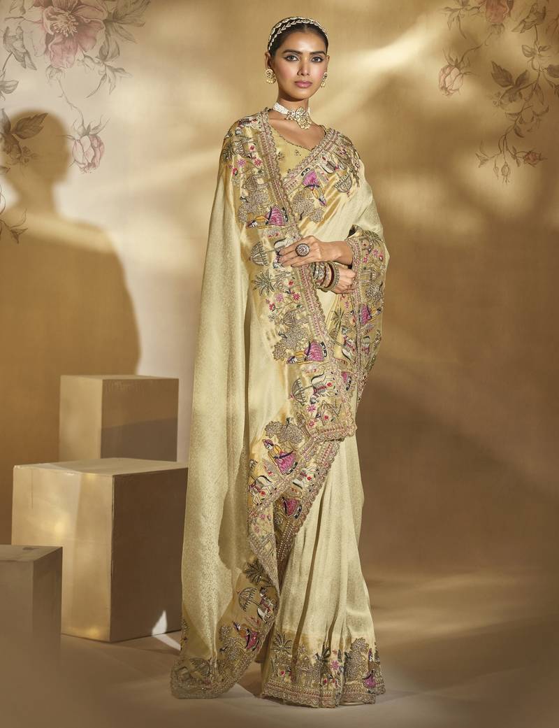 | Product Name | Cream Ziraf Silk Blend Saree With Jari, Thread, Cut Dana & Moti Heavy Work | |