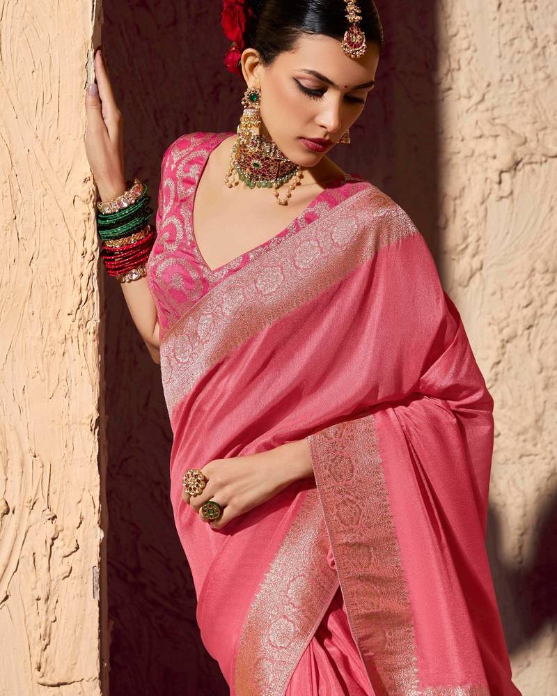 | • | Saree | : | Color- Pink / Fabric- Georgette |