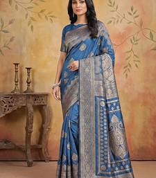 Dark blue elegant silk blend soft fabric saree for women – lightweight traditional saree