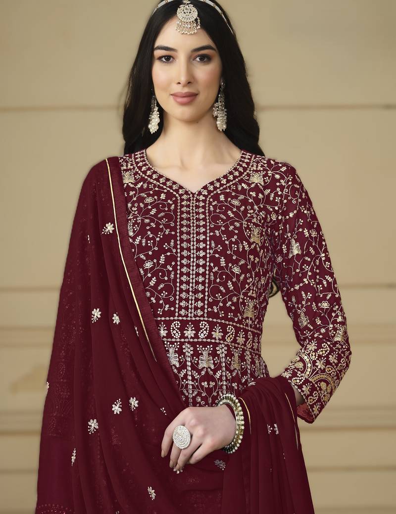 Kameez : Color- Dark Red / Fabric- Georgette