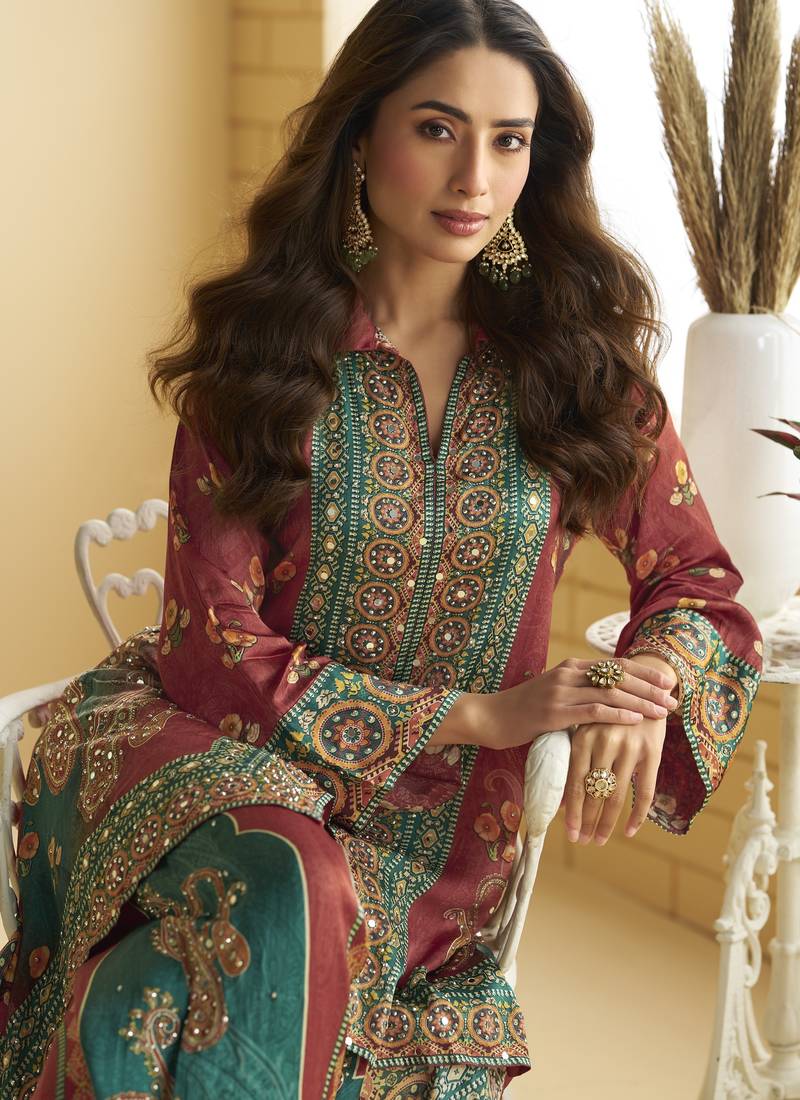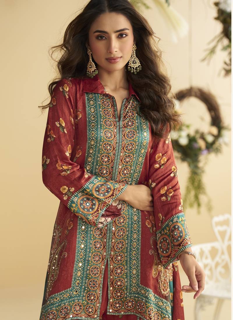 | Product Description | Real Premium Crep Silk ( Digital Crep Silk Emblissied Mirror Work Cord Sets ) |
